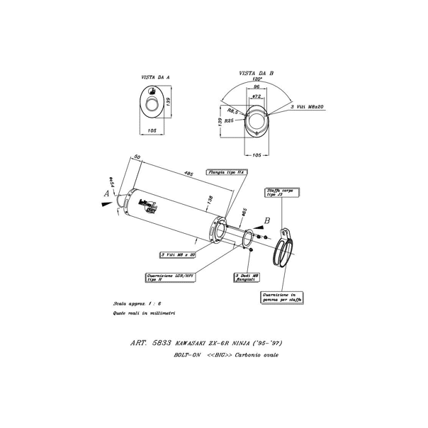 Exhaust Kawasaki. ZX-6R NINJA (95/97) oval carbon
