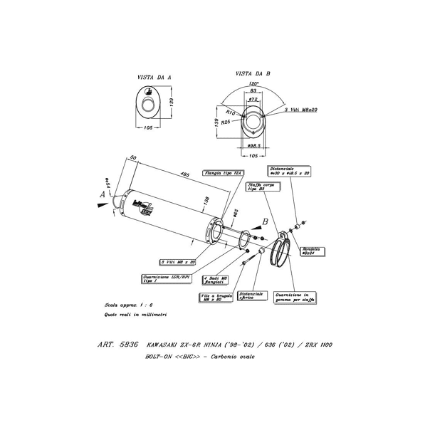 Exhaust Kawasaki. ZX-6R NINJA 98/99 big ovale titanium