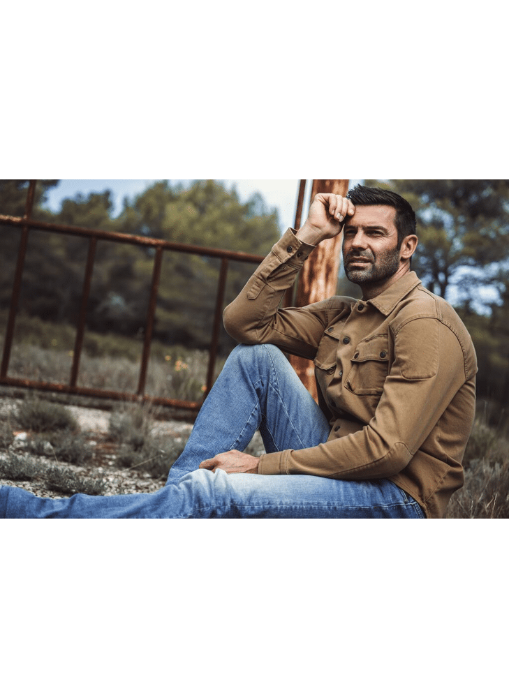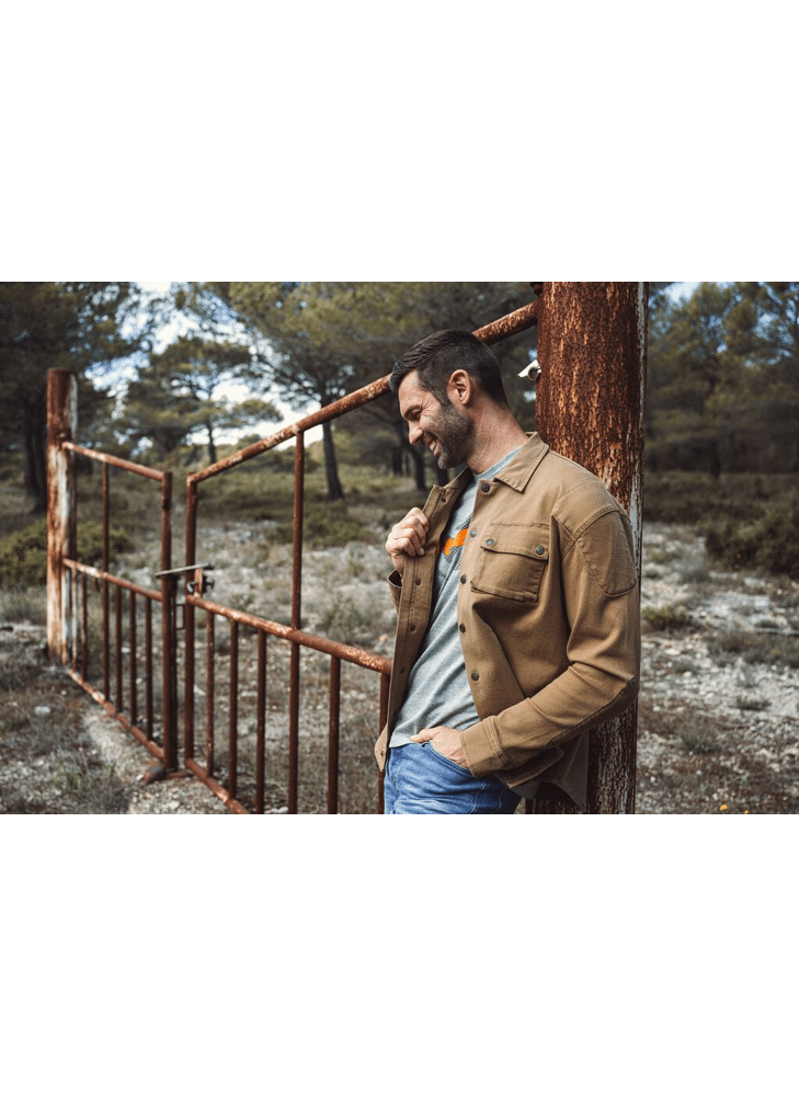 A men's Workwear-style canvas overshirt that brings you style and safety for your motorcycle trips