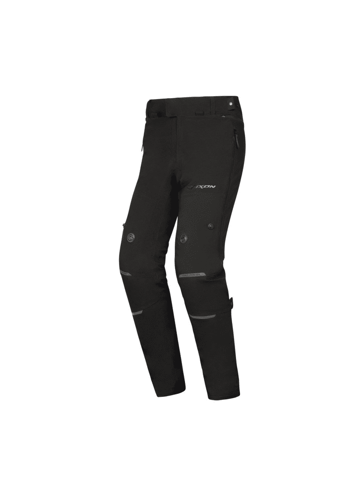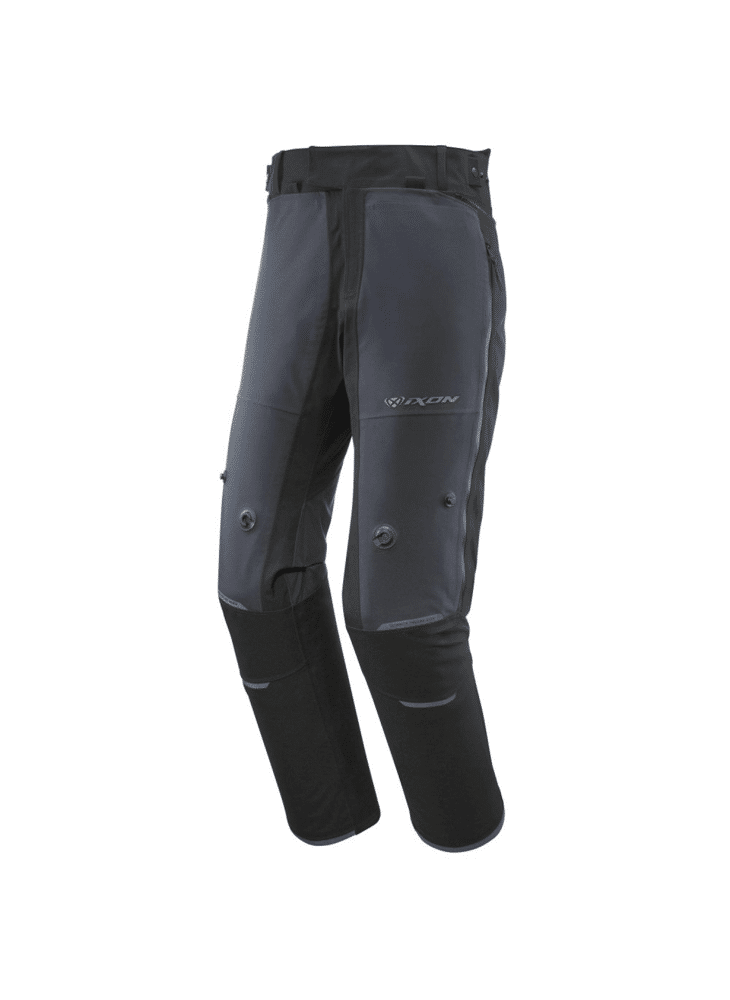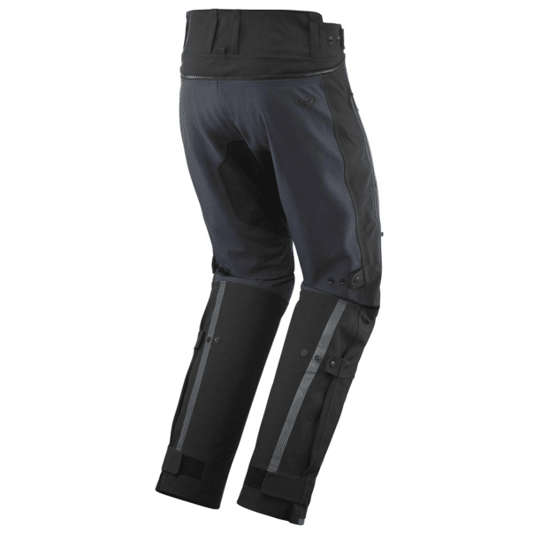 • Outer shell: Laminated softshell + Hard mesh ventilated panels • Inner shell: Soft mesh • Adjustments: Calves: press studs & elastic straps – Thighs: press studs & elastic straps – Ankles: pleats + straps + velcro to fit over boots – Waist: press studs & elastic straps/belt loops – 270° jacket/trouser connecting zip • Pockets: 2 outside pockets