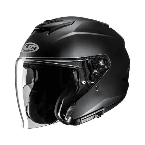 De i31 is ontstaan ​​uit jaren van ontwerp en onderzoek en heeft de beste jethelm op de markt gebracht. Het begint met het vizier van de volgende generatie. Dit nieuwe Pinlock-ready vizier biedt een breed, vervormingsvrij zicht en heeft nu een versterkt frame rond de onderranden om windturbulentie te verminderen. Het vizier maakt ook gebruik van het gereedschapsloze, snel los te maken rastersetsysteem voor eenvoudig installeren/verwijderen. HJC heeft ook het interne zonnevizier geüpdatet met een groter dekkingsgebied dan het vorige model. Het ventilatiesysteem zorgt voor maximale luchtstroom in de helm, terwijl de achterste uitlaatspoiler een vacuümeffect creëert dat de warmte wegspoelt. De Multi-Cool-binnenvoering en de binnenkant van het wangkussen zorgen voor extra verkoelende eigenschappen met zijn vochtafvoerende antibacteriële stof. De 2 Shell/3 EPS-verdeling vermindert het gewicht van de helm en biedt een betere maatvoering.