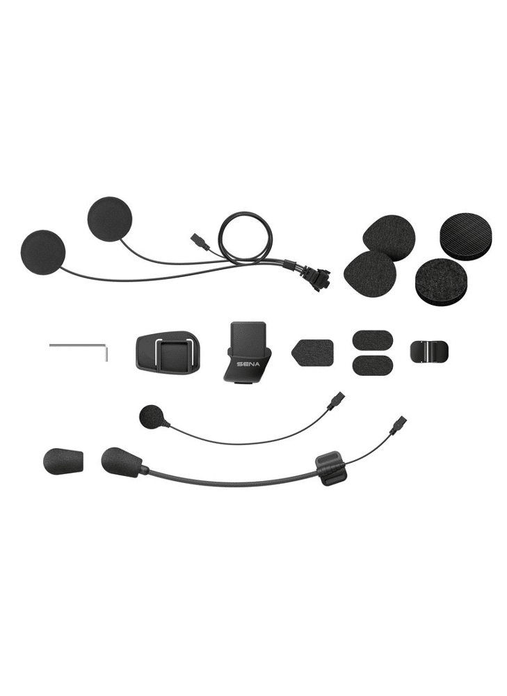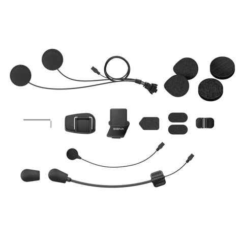 Helmet clamp kit for the 5S Bluetooth Intercom system. Includes fasteners, speaker pads, microphone sponges, speakers and microphones, and more.