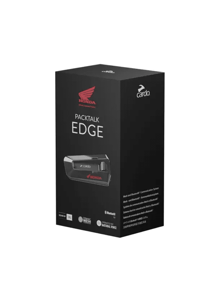 Maak kennis met de geheel nieuwe Packtalk Edge. Packtalk Edge is het meest geavanceerde communicatiesysteem ter wereld en wordt aangedreven door de 2e generatie van Cardo's Dynamic Mesh Communication. Dit zorgt ervoor dat de Packtalk Edge een ongekend kristalhelder geluid en een gemakkelijke, bliksemsnelle koppeling voor een groep van maximaal 15 rijders realiseert. Zoals je gewend bent van de Packtalk-serie is het bereik maximaal 1,6 km van rijder tot rijder. De Packtalk Edge heeft vele verbeterde functies, waaronder een verbeterde Natural Voice Operation, verbeterd JBL-geluid en een verbeterde ruisonderdrukkende microfoon voor een uitzonderlijke geluids- en communicatie-ervaring.WATERBESTENDIGDe PACKTALK EDGE is bestand om in elke extreme weersomstandigheden gebruikt te worden. Regen, zon, modder, stof of sneeuw, de PACKTALK EDGE kan tegen een stootje en houdt je altijd verbonden.MAGNEET BEVESTIGINGZo simpel en veilig. Breng uw PACKTALK EDGE in de buurt van de magnetische houder en hij klikt zich stevig vast. Het is niet alleen een andere vorm van bevestigen, maar zorgt er ook voor dat de houder makkelijker te bedienen en nóg steviger is.GELUID DOOR JBLNieuwe en krachtige 40 mm high-definition luidsprekers die tot in de perfectie zijn ontworpen door JBL-experts, met een verbeterde muziekprocessor en drie opnieuw ontworpen audioprofielen.NATURAL VOICEDankzij de verbeterde Natural Voice Operation hoeft u nooit meer op een knop te drukken. Zeg gewoon "hey Cardo" en vertel wat je wilt, je PACKTALK EDGE doet de rest.GEN 2 DYNAMIC MESH COMMUNICATIE (DMC™)Cardo heeft 's werelds beste motor-intercom gebruikt en verbeterd. Voor maximaal 15 rijders met een bereik van maximaal 1,6 km.Wat is DMC?Bij communicatie in groepsverband via een Bluetooth® verbinding zijn alle motorrijders als een ketting met elkaar verbonden. Wanneer één van de schakels in de ketting uitvalt, dan moet de verbinding worden hersteld en is communicatie tijdelijk niet mogelijk. Dankzij DMC™ is dit verleden tijd, via een virtueel netwerk zijn alle motorrijders dynamisch met elkaar verbonden. De communicatie wordt niet beïnvloed als één van de motorrijders de groep verlaat of weer instroomt, het netwerk past zich weer razendsnel aan. Tot vijftien motorrijders kunnen in DMC™ modes gelijktijdig met elkaar communiceren!Naast deze technologie is de Packtalk uitgerust met de nieuwste Bluetooth® chip (5.2). Beide technologieën werken gelijktijdig en vloeiend samen. Daarmee biedt het systeem een breed scala aan verbindingsmogelijkheden met Bluetooth® apparaten en is het systeem compatibel met ander Cardo modellen. Zelfs met andere merken!Eenvoudig koppelenRazendsnel, gemakkelijk en eenvoudig. Moeiteloos groeperen als nooit tevoren. Hierbij hoeft er geen groepsleider meer aangewezen te worden. Druk bij alle units op de knop om te koppelen en Cardo garandeert dat er binnen enkele seconden een groep is gevormd. De Cardo Packtalk Edge kent dan zelf een groepsleider toe.Privé chatVoor de momenten dat je wil roddelen met slechts één lid van de groep.GeluidskwaliteitDe best klinkende intercom ter wereld. Kletsen met motorvrienden klonk nog nooit zo goed.FM radioIngebouwde FM-radio met RDS voor automatische selectie van het sterkste signaal - of u nu in de stad bent of in the middle of nowhere, met geheugen voor 6 voorkeurzenders.Over-the-air software/updateNooit meer een kabel nodig dankzij de draadloze software update. Deze update is te downloaden via de Cardo Connect App.Universele connectiviteit